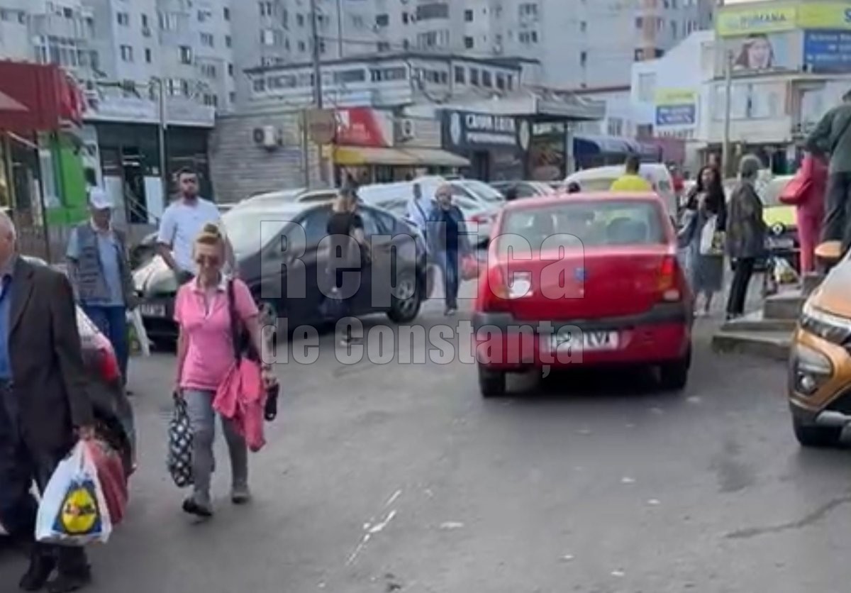 Localnicii din Piața Tomis 3, obișnuiți să își facă cumpărăturile în liniște, s-au văzut nevoiți să se ferească din calea unui șofer nepriceput care-și făcea loc printre pietoni, într-o zonă cu sens unic.