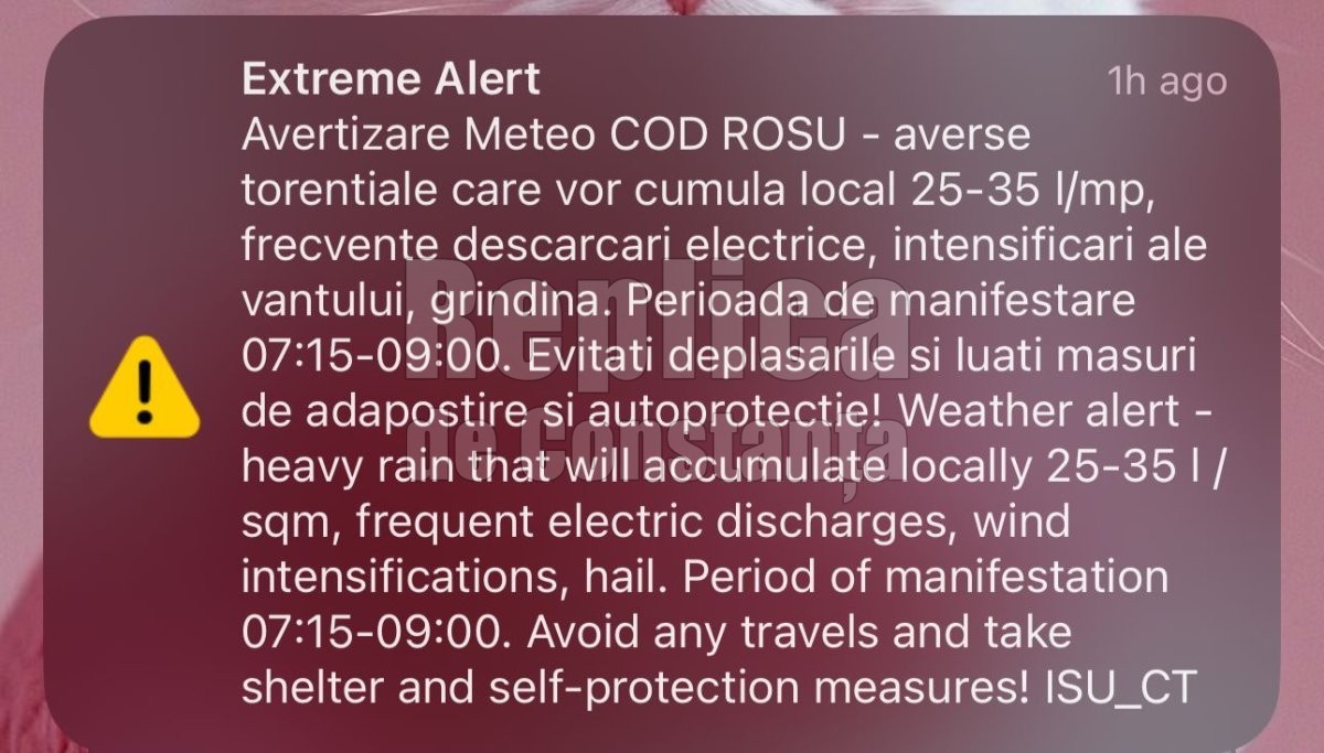 RO Alert trimis la ora 7:00