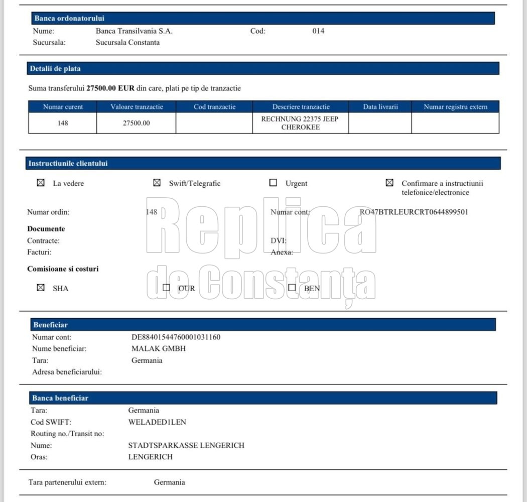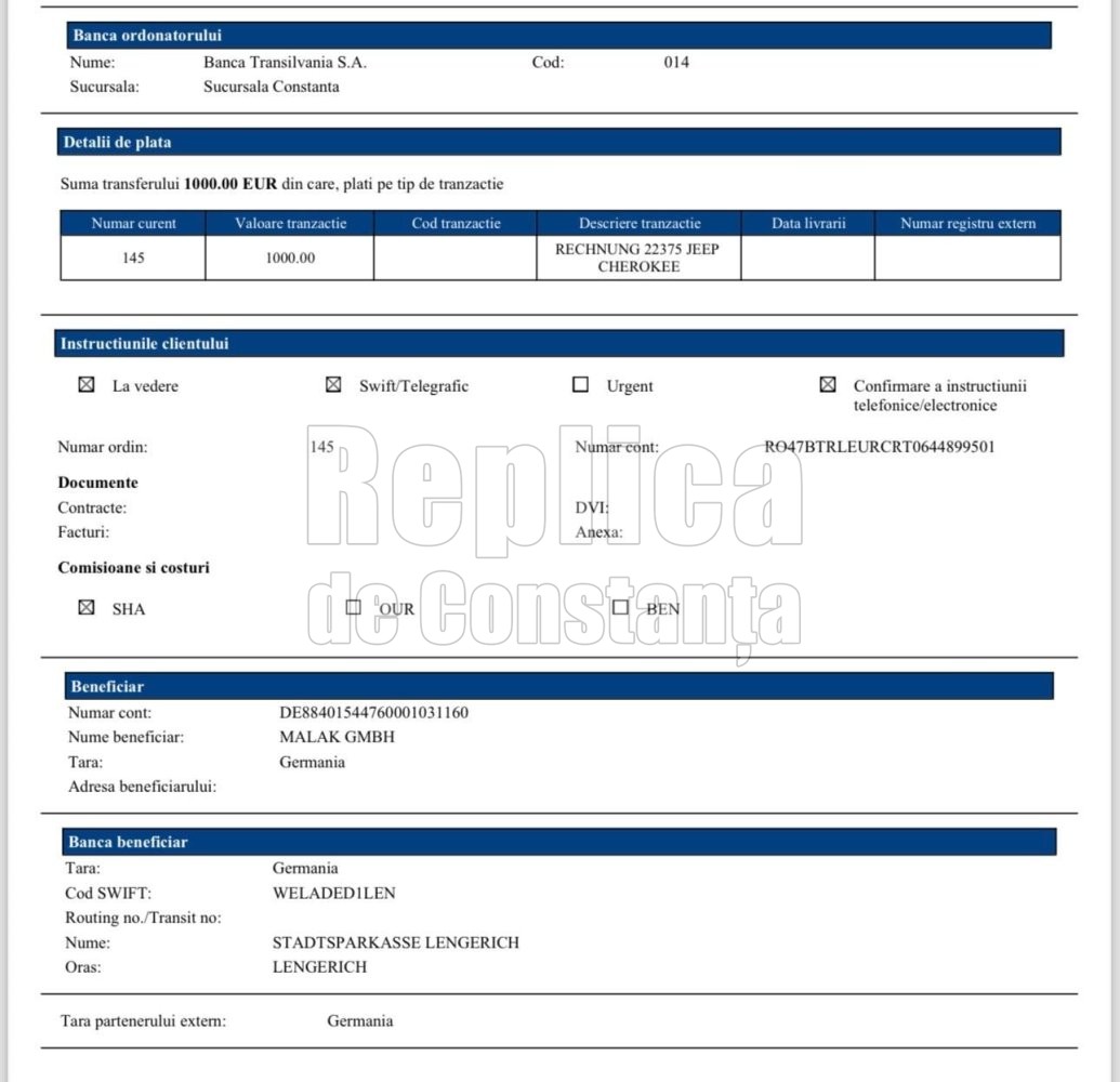 tepe de lux. Dumitru Georgescu traieste pe picior mare in strainatate, in timp ce victimele plang dupa bani si masinile promiseOrdin de plată al unuia dintre păgubiți