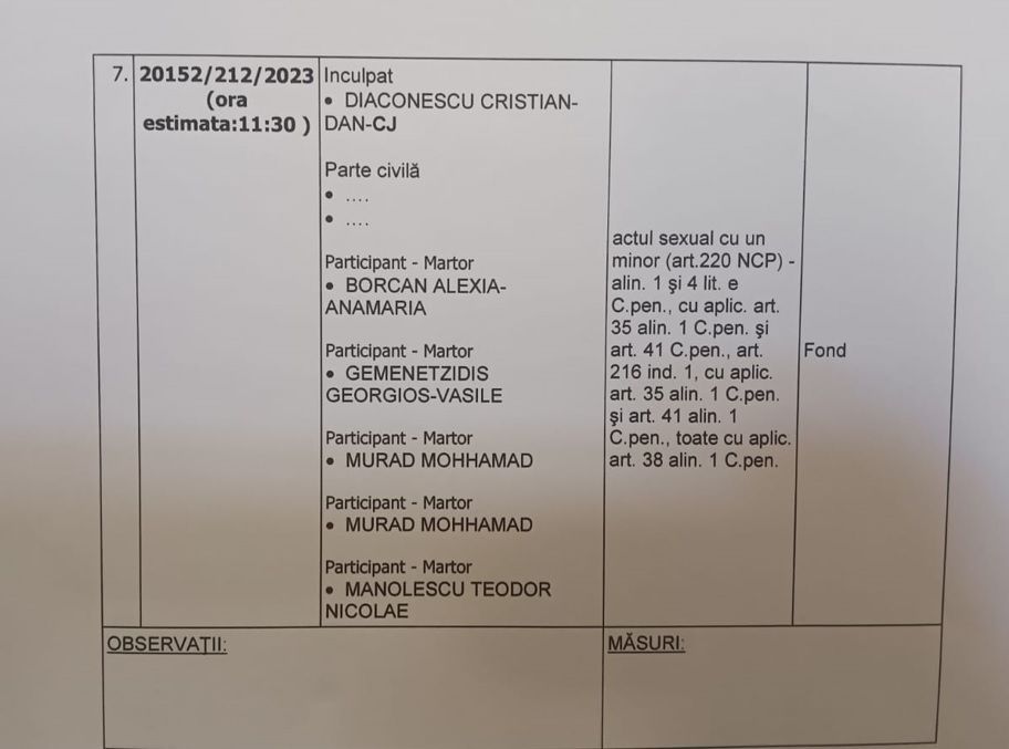 Reamintim faptul că, la data de 31 iulie a.c., procurorul de caz din cadrul Parchetului de pe lângă Judecătoria Constanța a dispus trimiterea în judecată a inculpatului Dan Cristian Diaconescu, cercetat sub control judiciar, pentru săvârșirea în stare de recidivă postexecutorie a infracțiunii de act sexual cu un minor în formă continuată, faptă prevăzută și pedepsită de dispozițiile legale.