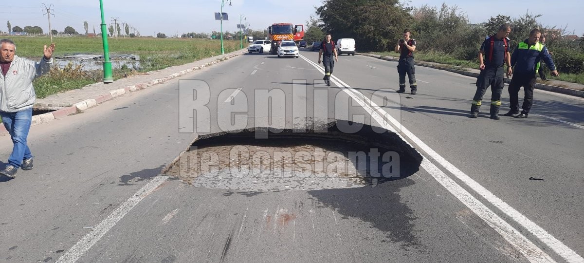 Panică între Năvodari și Lumina. Un crater imens s-a format în carosabil, mai multe mașini au fost avariate! Video
