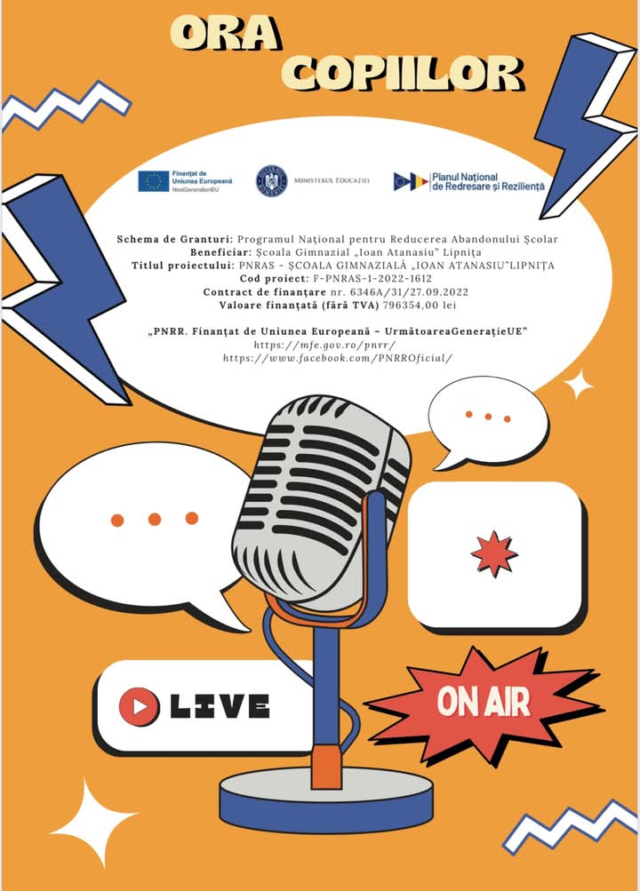 Proiectul a fost realizat cu fonduri europene, prin PNRR, în cadrul Programului Național de Reducere a Abandonului Școlar.